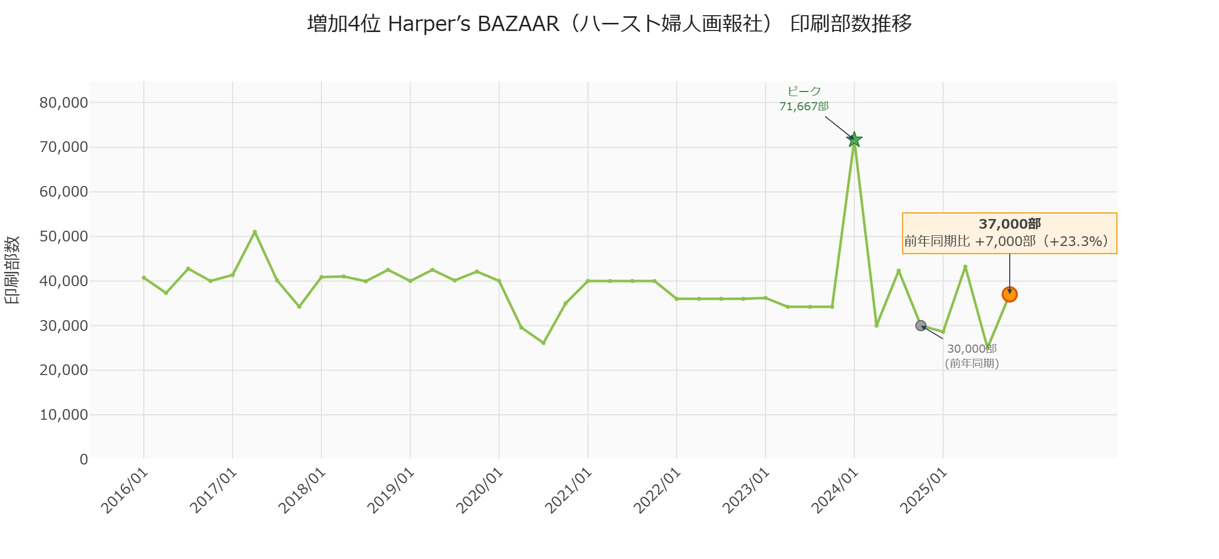 この記事は、一般社団法人日本雑誌協会が公表する印刷部数データを基に、独自の分析を加えたものです。