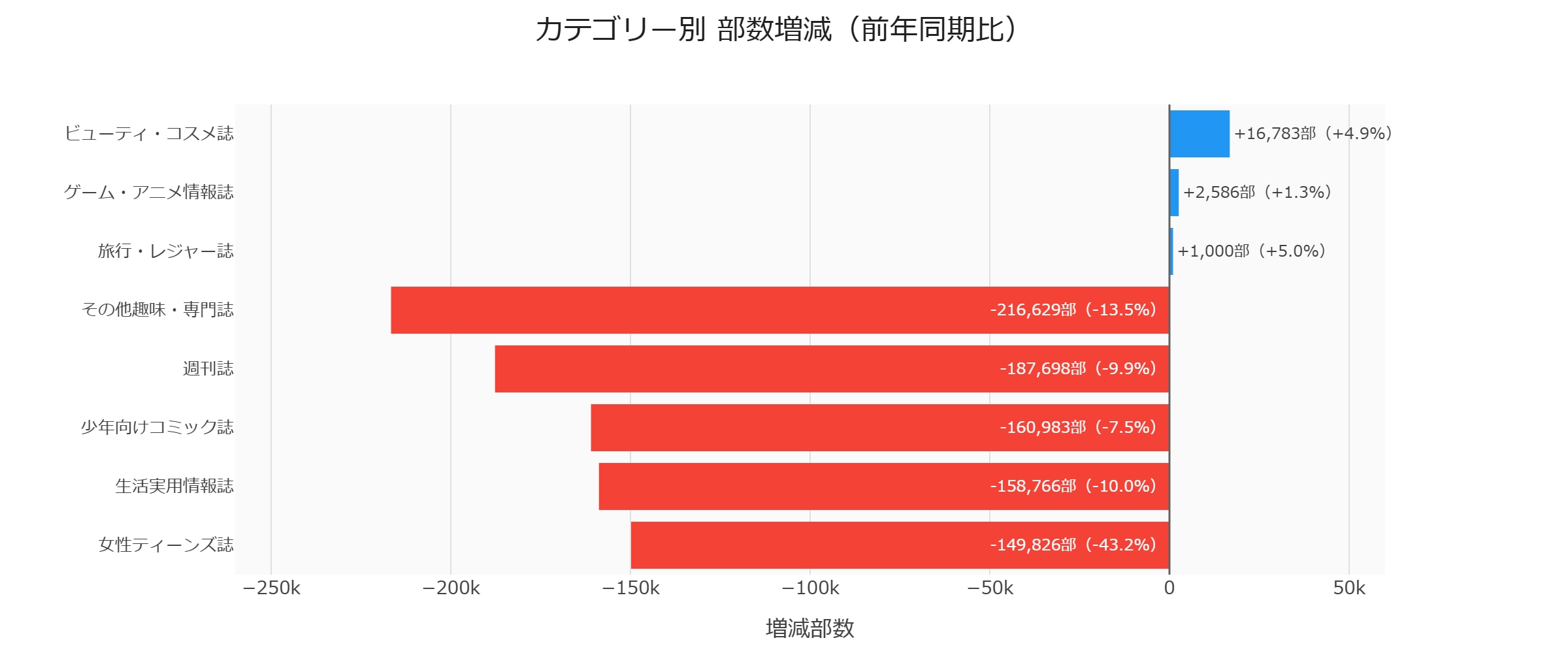 女性ティーンズ誌:-43.2%(-149,826部)