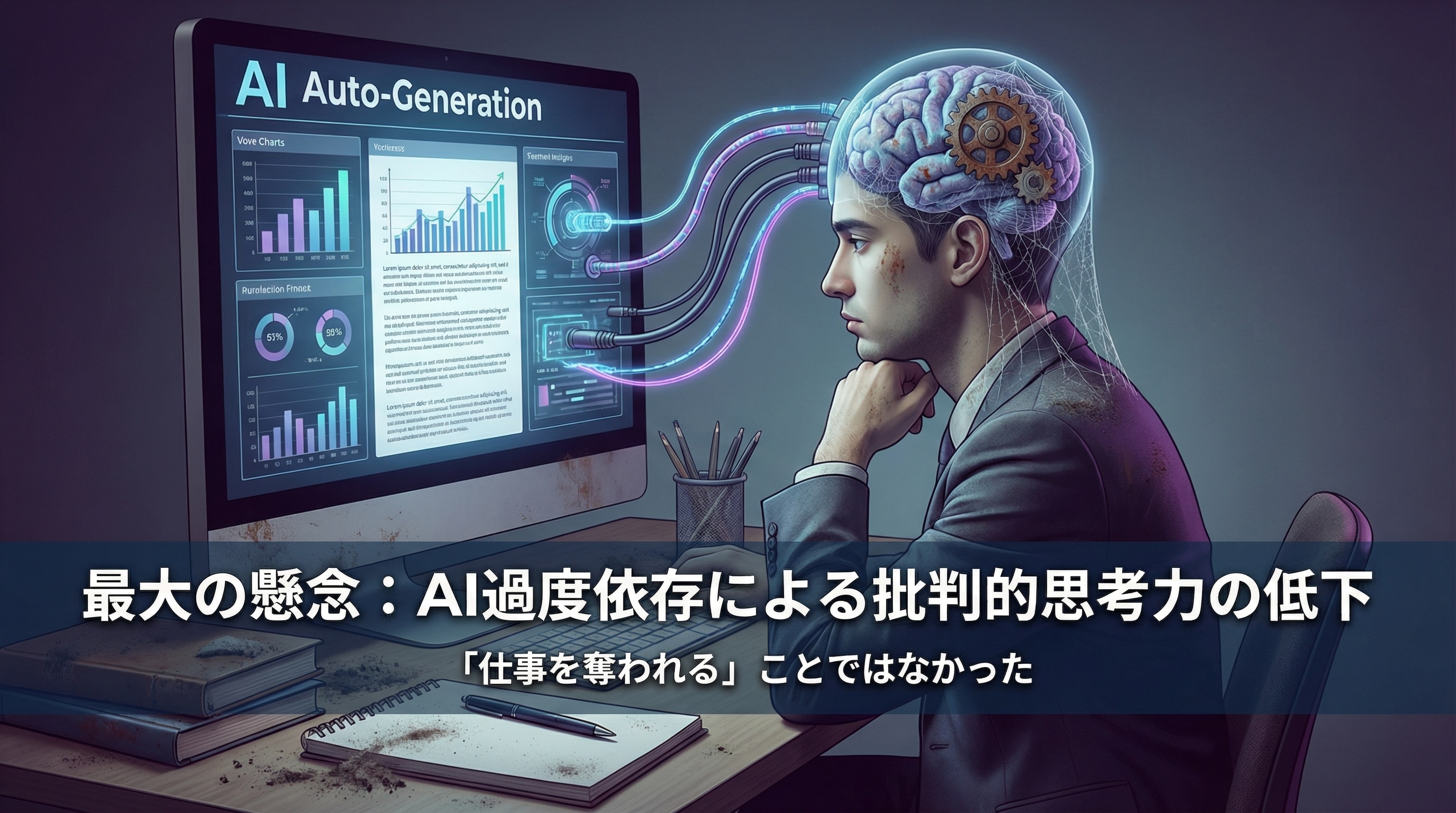 効率化のためにAIに頼りすぎると、批判的思考力や創造性が鈍る可能性があります。