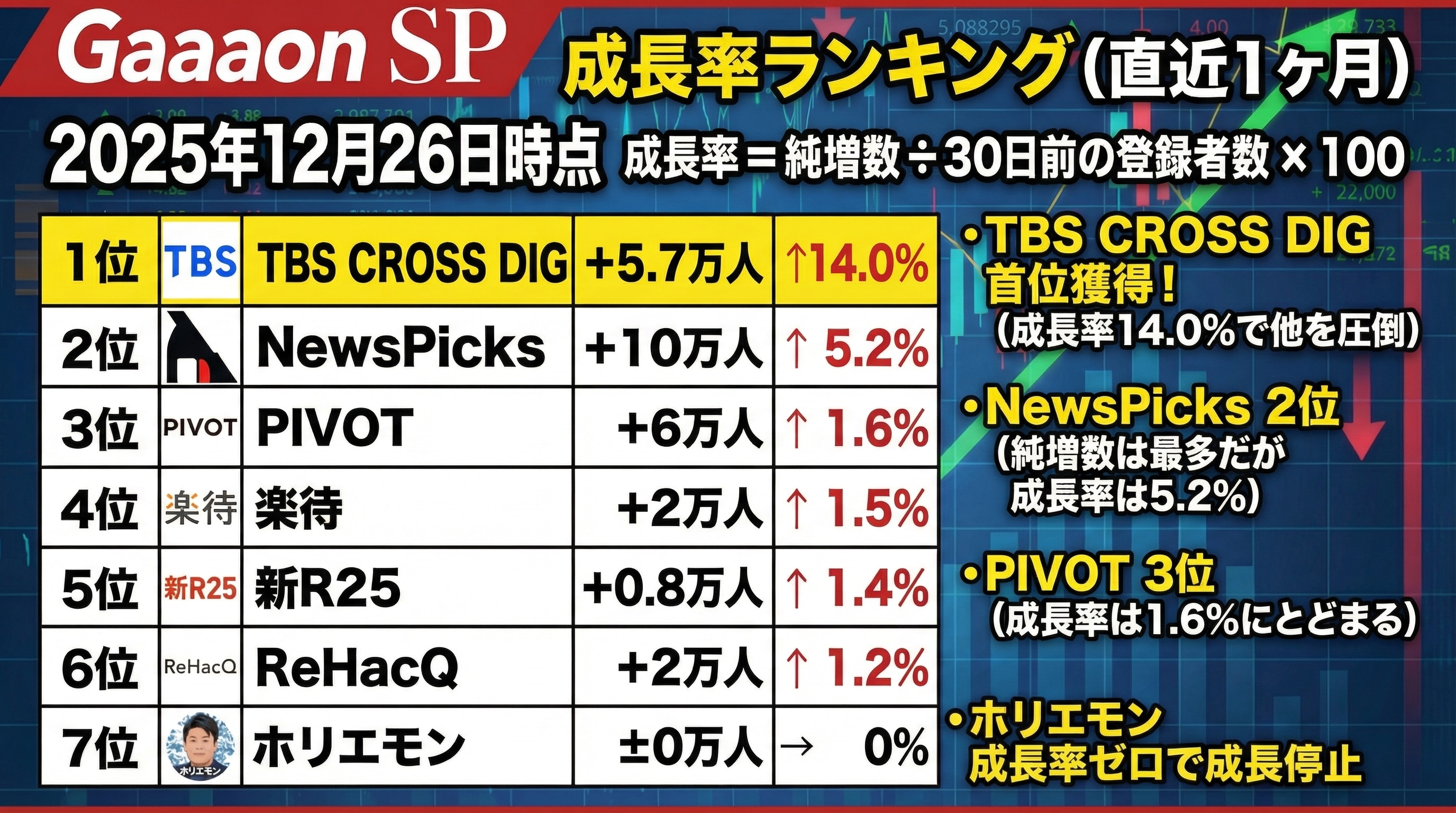 5位 | 新R25 | +0.8万人 | 1.4% |