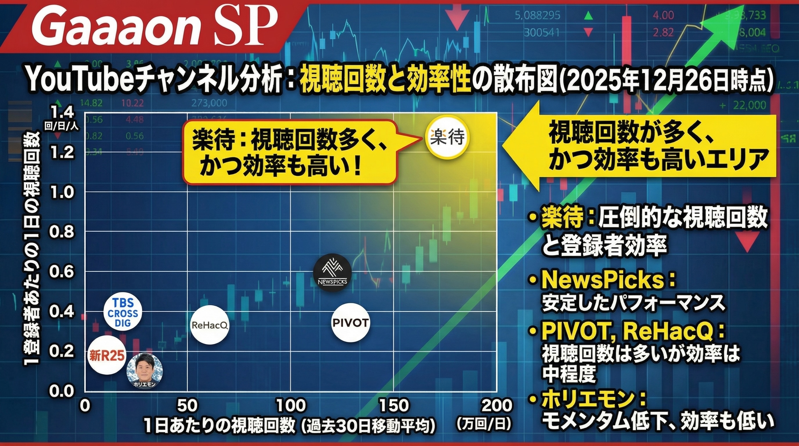 373万人の登録者を抱えるPIVOTを、139万人の楽待が視聴回数で上回っている——これは驚くべき事実です。