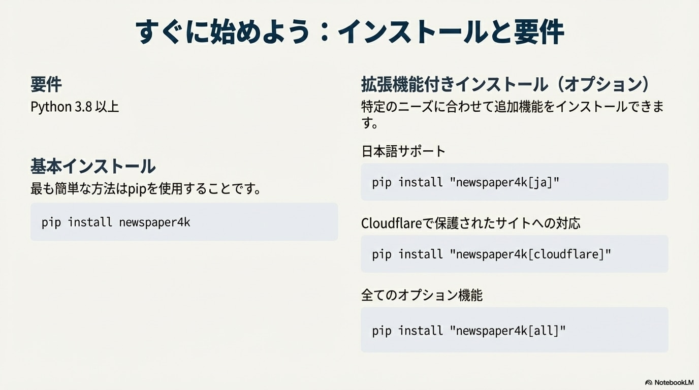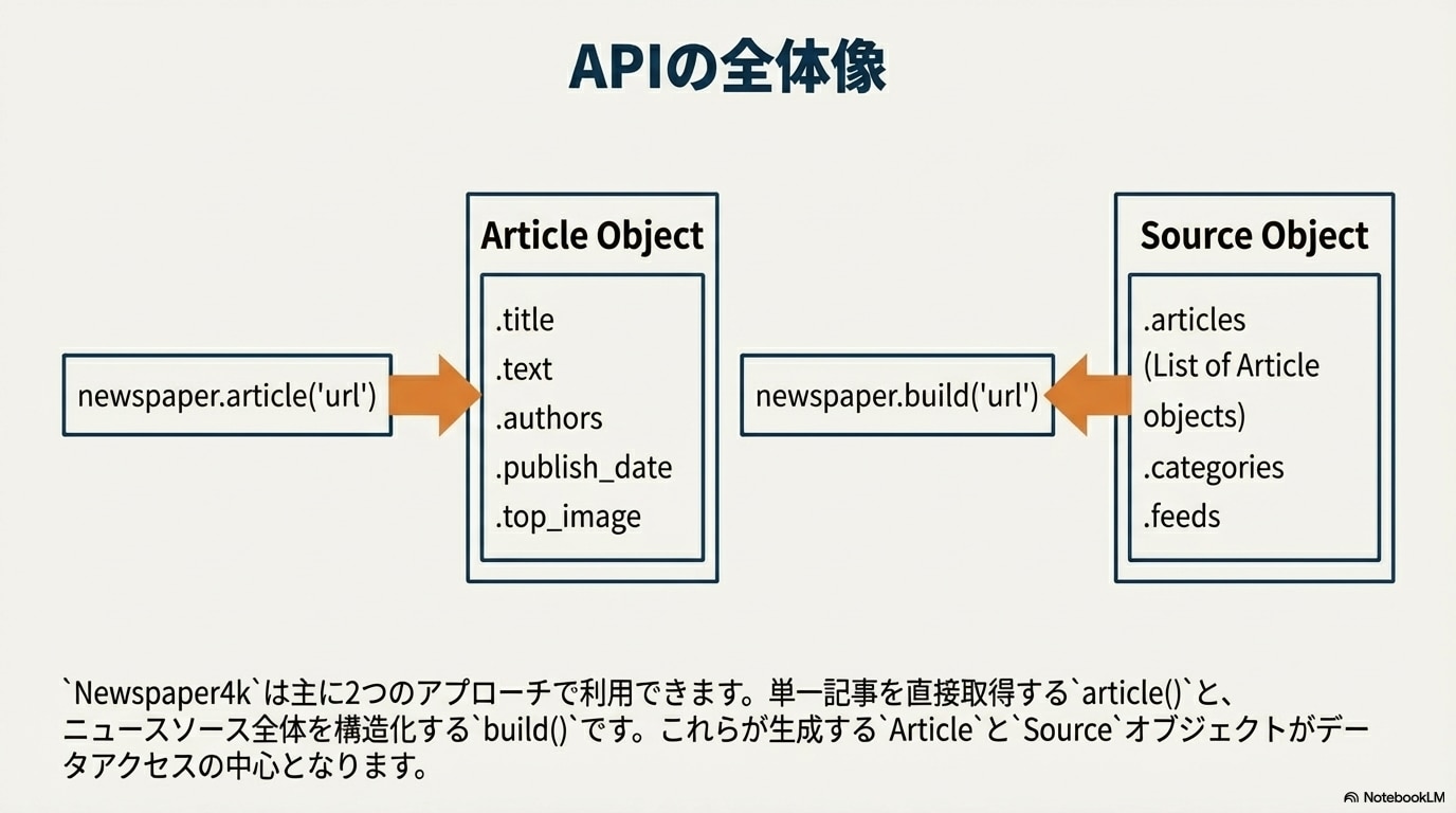 newspaper4kは、Webサイトからニュース記事を自動で抽出し、タイトル、本文、著者、公開日、画像などを整理してくれるPythonライブラリです。