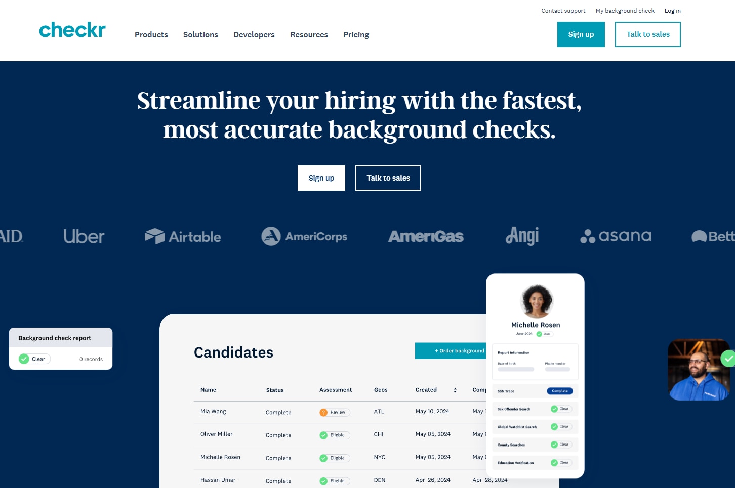 Checkr, Inc.は米国のバックグラウンドチェック(身元調査)企業です。Uber、Lyft、Instacartなどのギグエコノミー企業を主要顧客に持ち、企業価値50億ドル以上と評価されるユニコーン企業として知られています。
